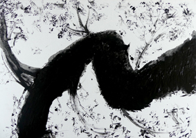 Les formes et les visions fantomatiques qui naissent de cette peinture rapide brouillent
